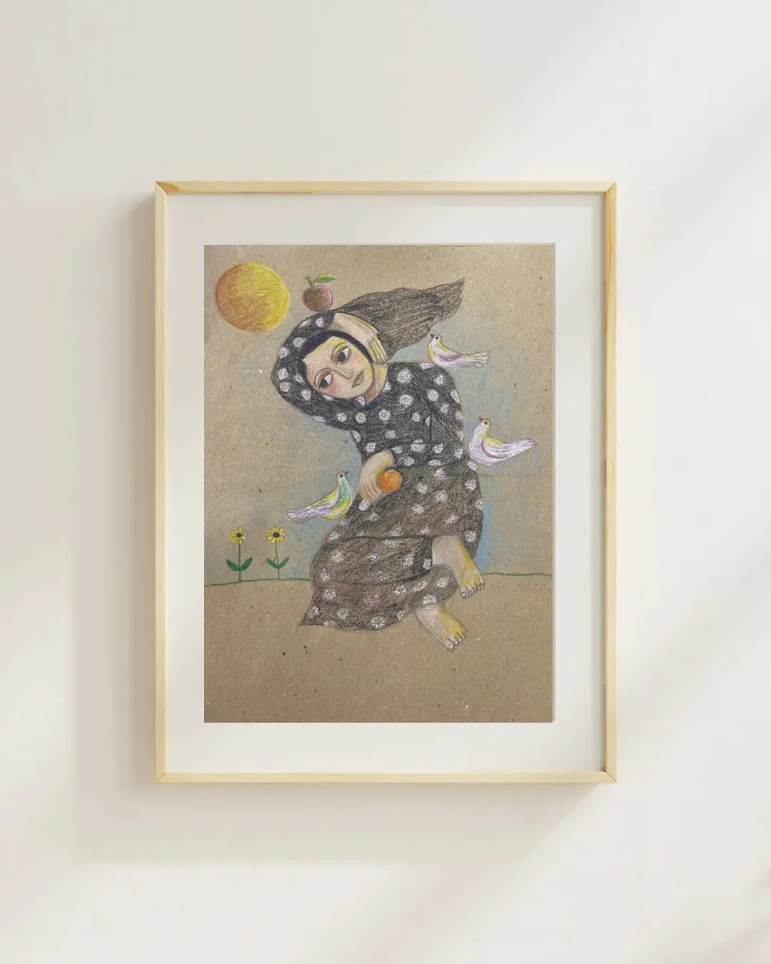 This collection, Haya shows how women change and switch their feelings when they talk to plants, flowers and birds. Like the sun that sets and rises again, like birds that migrate and return, like the sky that clouds over and clears once more, like the sea that rages and calms, women resemble nature. The Return to Nature is an invitation to return to life with all its hardships, joys, and sorrows. Haya employs the warm and cold colors to draw her figures and portraits. This contrast appeals to viewers’ eyes and enriches paintings with more aesthetics.
