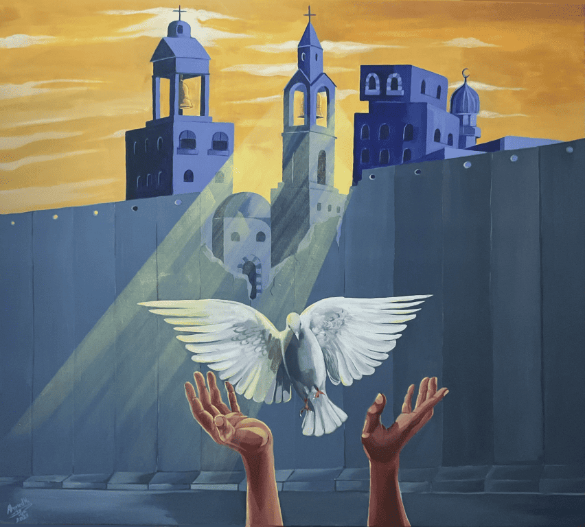 Hmeedat has painted these works through different periods of his life. Some of these paintings were painted in Bethlehem before he moved to the United States of America in 2015, to start his legal studies at Syracuse University. While he was in the US, he also created some art, particularly during his art residency at the Museum of the Palestinian People in Washington, DC.