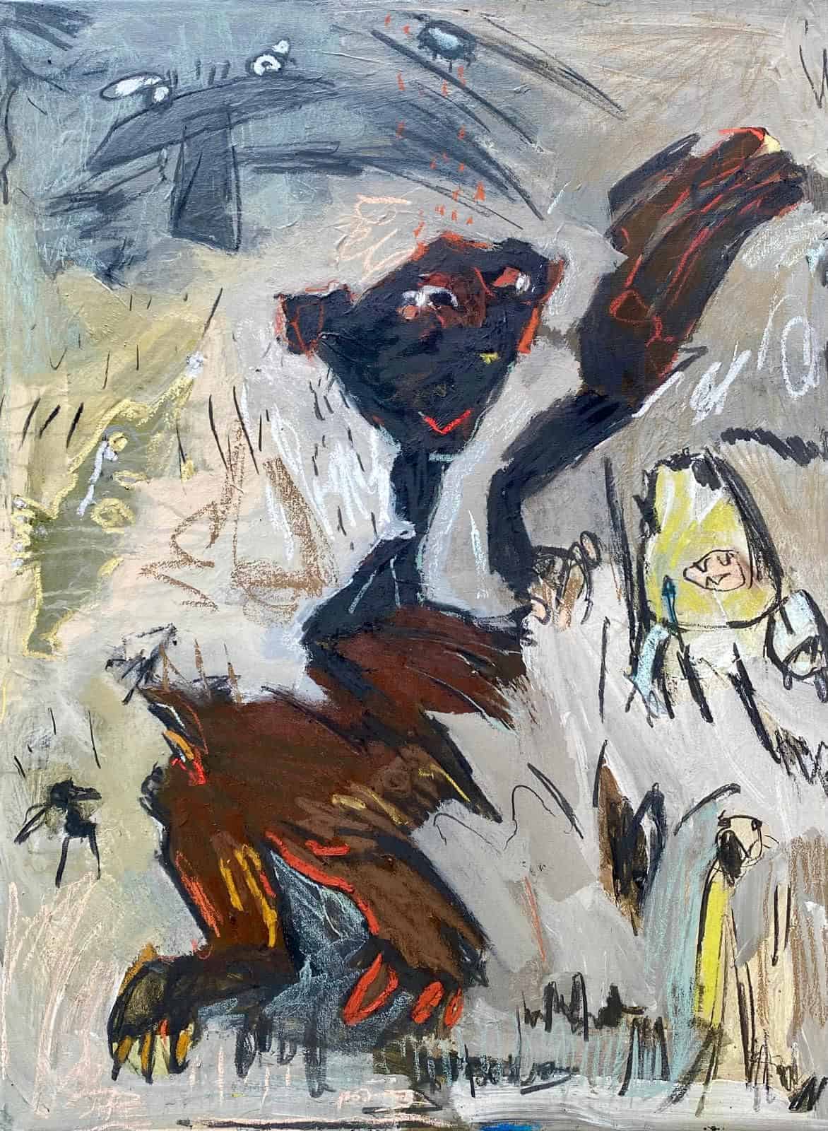A central focus is on the goddess Anath, a feminine archetype of love and war, who plays a key role in maintaining natural balance alongside Baal, the god of rain and fertility. Through the myth in which Anath defeats Mot, the personification of drought, by crushing him and turning him into bread, the artist evokes human—especially female—efforts to preserve life in the face of death, scarcity, and ecological destruction.