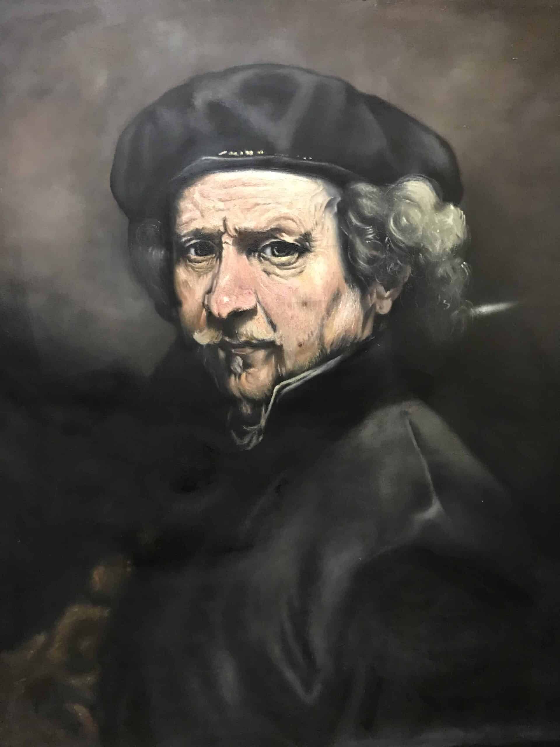 Rembrandt Harmenszoon van Rijn was a Dutch artist from the Golden Age, known for his Baroque style. Faroukh considers Rembrandt’s works to be among the most inspiring to him, which is why he chose to paint this portrait of him as an expression of appreciation for his contribution to the world of art.