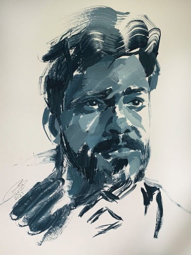 “Searching for the Blue” is a captivating series of portraits born amidst the COVID-19 pandemic, with roots in my last days in Alexandria, Virginia. Faced with leaving behind most of my art supplies, I chose to keep just three colors: ultramarine blue, titanium white, and ivory black. As I returned to Palestine, I wondered how this minimal palette would shape my art.