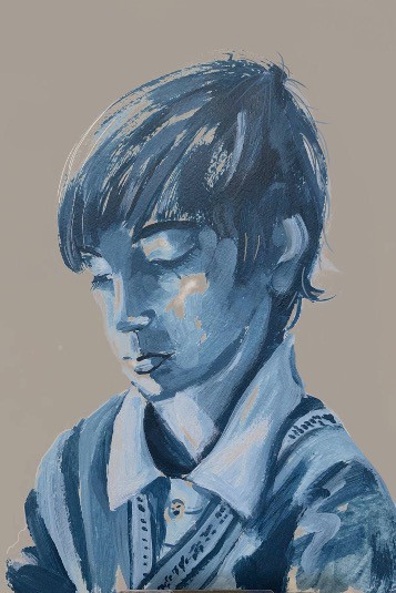 “Searching for the Blue” is a captivating series of portraits born amidst the COVID-19 pandemic, with roots in my last days in Alexandria, Virginia. Faced with leaving behind most of my art supplies, I chose to keep just three colors: ultramarine blue, titanium white, and ivory black. As I returned to Palestine, I wondered how this minimal palette would shape my art.