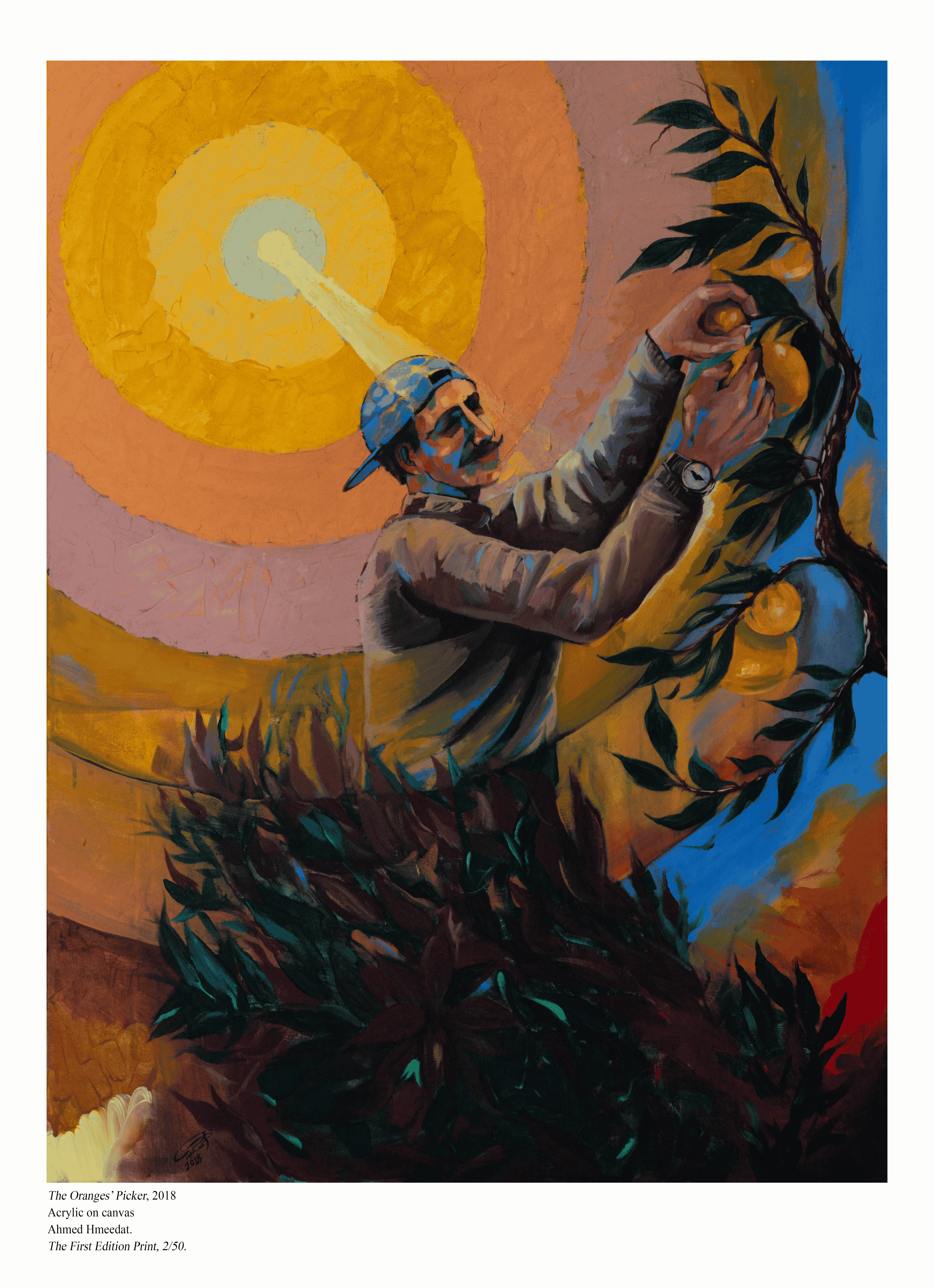 “The Orange Picker” was created in Washington DC, when Ahmed Hmeedat was doing his art residency at the Museum of the Palestinian People.
