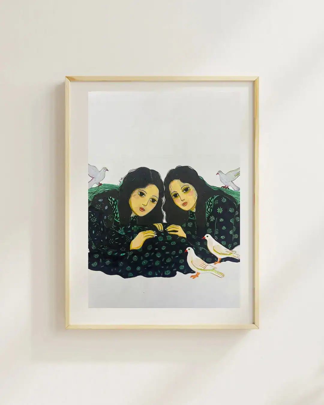 This collection, Haya shows how women change and switch their feelings when they talk to plants, flowers and birds. Like the sun that sets and rises again, like birds that migrate and return, like the sky that clouds over and clears once more, like the sea that rages and calms, women resemble nature. The Return to Nature is an invitation to return to life with all its hardships, joys, and sorrows. Haya employs the warm and cold colors to draw her figures and portraits. This contrast appeals to viewers’ eyes and enriches paintings with more aesthetics.